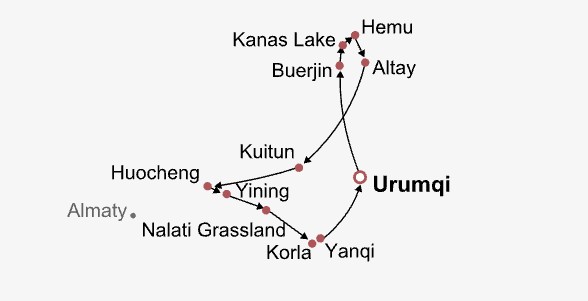 Xinjiang Scenery with Ethnic Flavor Appreciation11 Days Urumqi - Buerjin - Kanas Lake - Hemu - Altay - Kuitun - Huocheng - Yining - Nalati Grassland - Korla - Yanqi - Urumqi from USD2479USD2181