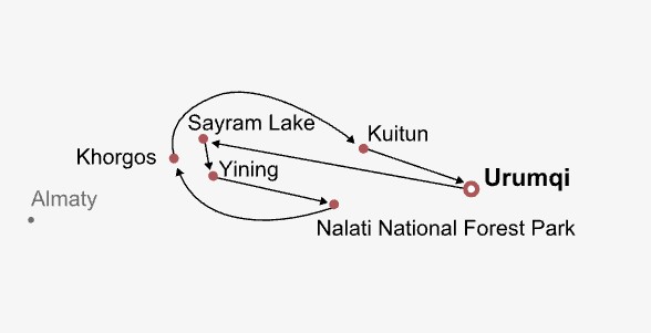 Scenic Xinjiang with Nalati Grassland8 Days Urumqi - Sayram Lake - Yining - Nalati National Forest Park - Khorgos - Kuitun - Urumqi from USD1359
