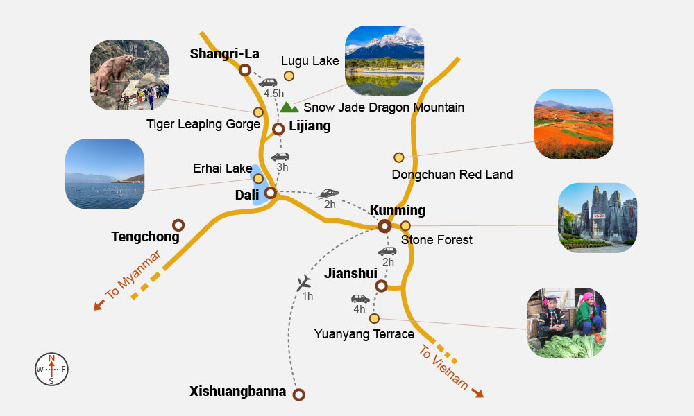 For longer trips, consider adding Jianshui to admire its ancient city, Yuanyang for Hani rice terraces, Tengchong to experience volcanic hot springs, and Xishuangbanna to breathe in the tropical rainforest. With two weeks, extend to neighboring Guizhou to explore the Miao, Zhuang, and Dong villages with diverse minority cultures. If you only have a 3 to 5 day’s break, check out our city packages for an in-depth tour of the destination that interests you. Share with us as soon as you have any travel ideas, and we will reply to you with a customized tour to your satisfaction within 12 hours.