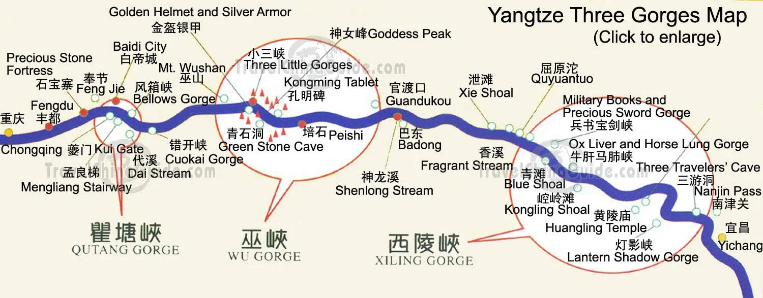 Yangtze cruises between Chongqing and Yichang/Wuhan/Shanghai are frequently-chosen itineraries. Tourists can discover a river abounding with amazing natural beauties and historic relics. No one would deny the majesty of the Three Gorges - Qutang Gorge, Wu Gorge and Xiling Gorge. During the cruise and the onshore excursions, tourists can enjoy the spectacle of Fengdu Ghost City, the unique architecture of Shibaozhai, the fun of drifting in Shennong Stream and the wonder of Three Gorges Dam.