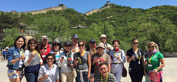 Red wine for a group toasting on the Great Wall. Cheers! -